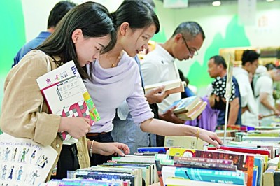 市民在北京地坛书市上挑选书籍。新华社发